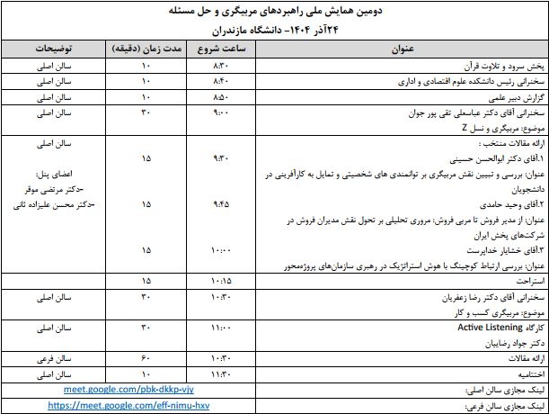 اطلاعیه برنامه زمانبندی دومین همایش ملی راهبردهای مربیگری و حل مسئله